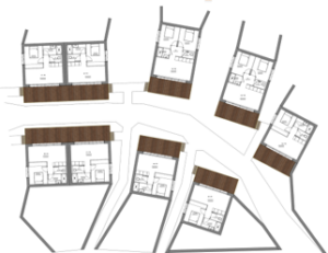 Afin d’accueillir des logements, une ancienne aire de stationnement était à disposition. Le principe de faire littéralement émerger les logements du sol est la force impactante du projet. Aménager un espace de vie agréable et parfaitement intégré au cadre naturel du site demeure une variable incontournable. La touche végétale est prédominante.