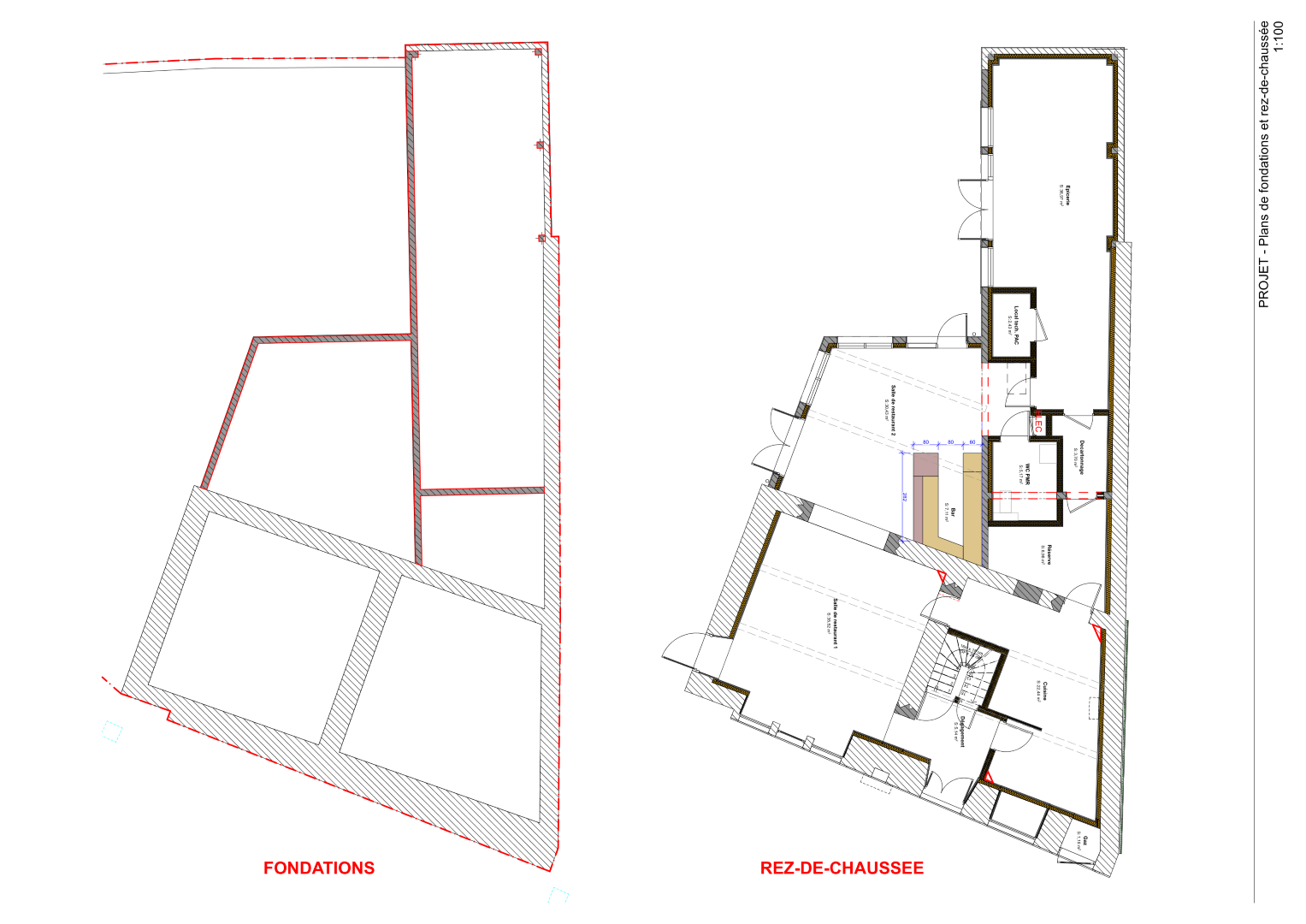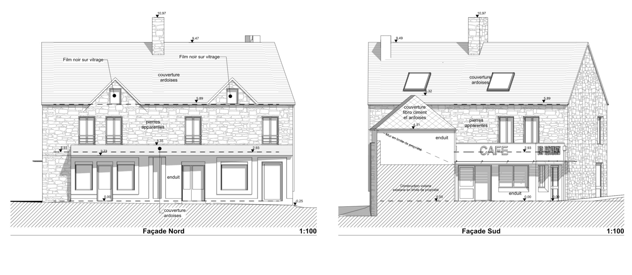 Dans le respect des conclusions du diagnostic et de la volonté de la commune, le projet a été élaboré. Les deux volumes existants, le principal en pierres et le secondaire en blocs béton, seront conservés et réhabilités. Une extension à l’angle Sud-Est sera nécessaire pour articuler le projet, créer une entrée repérable, et augmenter la surface du rez-de-chaussée.